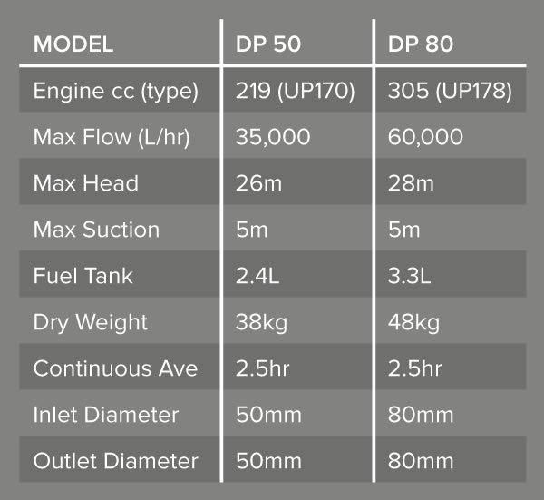 Red Rhino DP Diesel clear water pump perfect for the contractor or farmer who needs to pump from site, dams, man holes etc.